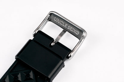 Uncle Straps black rubber tropic watch strap on Seiko dive watches