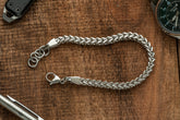 This stainless steel chain bracelet is the perfect accessory for both casual and formal occasions. Its smooth, polished links give off a modern yet timeless vibe, while the sturdy lobster clasp ensures a secure fit.