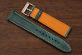 Calfskin leather is known for its finer grain and supple feel. This leather has a slightly higher polish than the cowhide and a more elevated look and feel. The grain is distinctive and deep, adding unique character to each strap. Unlike the Chromexcel, the color will not change as much with wear and it has a much more even appearance. These "wax" calfskin straps have a buffed top finish which is smoother than the regular calfskin.