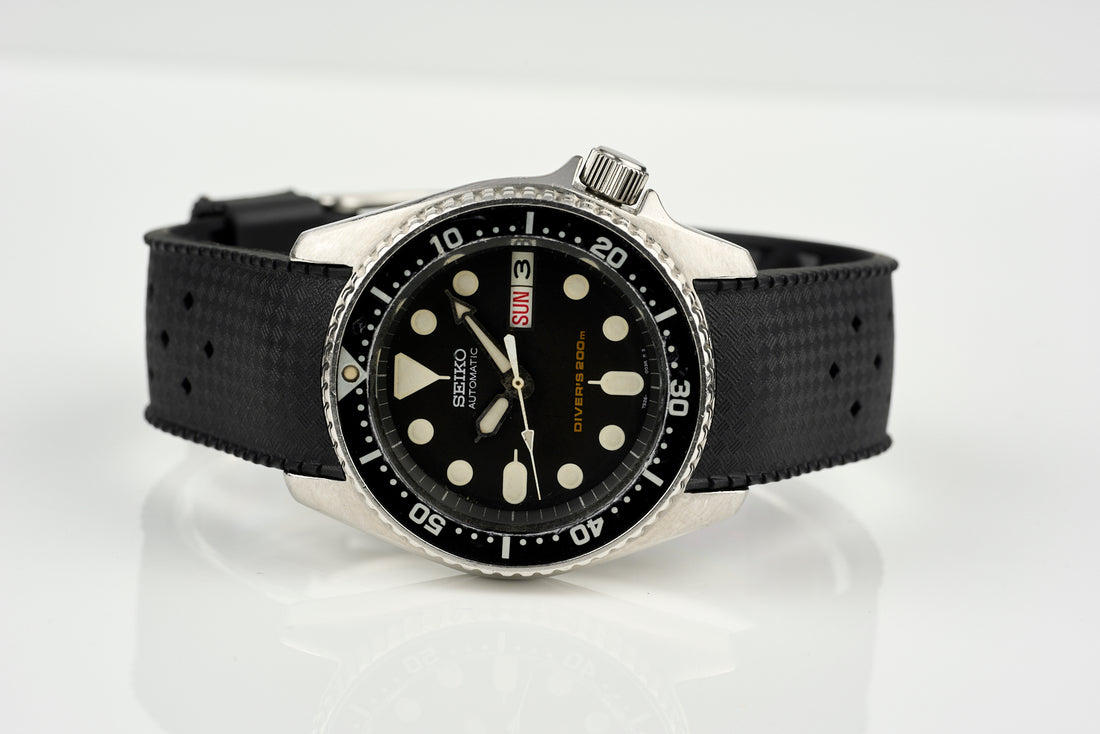 Black Custom Curved Waffle Strap (Seiko SKX013)