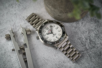 Pre-2018: Fits the older Seamaster 300m divers, usually produced in 2018 or prior. The most obvious indicator is if the date window is located at the 3pm position.  Comes with a double button milled clasp.