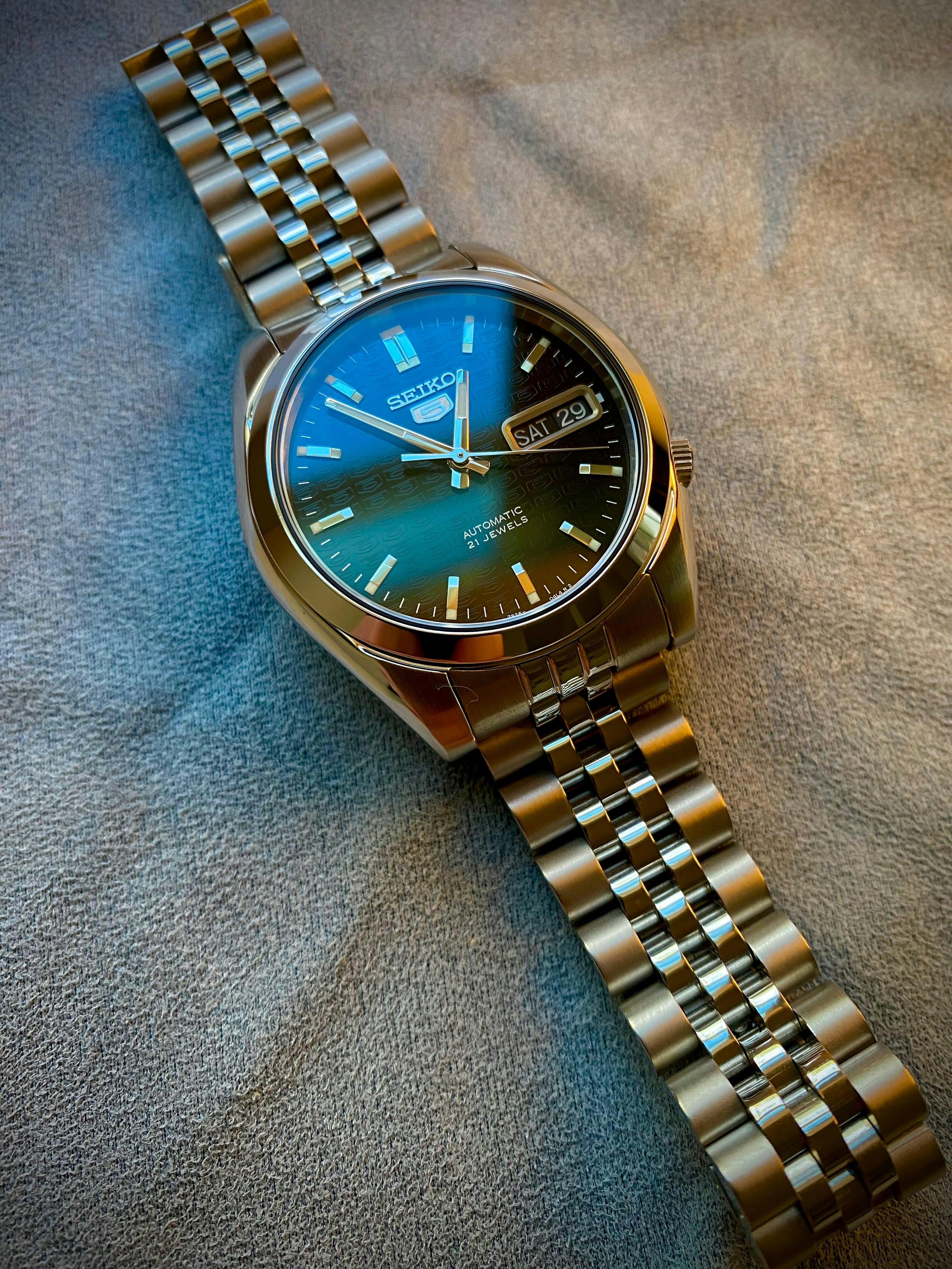 The SNK/SNKL line is a fantastic and inexpensive dress watch in the Seiko 5 line.  There are so many different dial designs and color options and it's hard to find a better watch for the price.  The bracelet, though, leaves a lot to be desired.