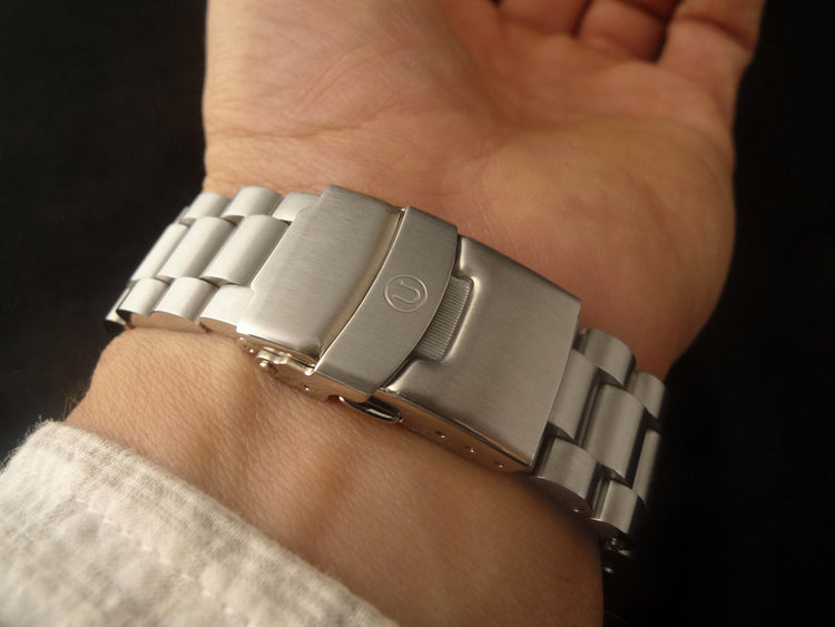 • Buckle : Solid 316L Stainless Steel 20mm Double Flip-Lock Diver Clasp
