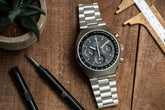 The Speedmaster Mark II is one of the most unique and retro Speedmasters ever made. Released in 1969, the Mark II is noted for its stunning dial features, distinctive case and hooded lugs. However, it looks out of place on anything but a bracelet.