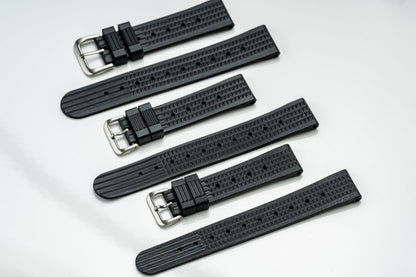 One rubber strap, one pair of 2.5mm "Fat Boy" spring bars. If you plan to wear this strap on a non-diver watch, request the custom spring bars when you checkout.