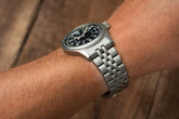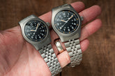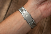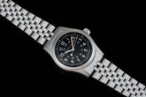 The modern 38mm and 42mm Khaki Fields are so popular, I have been inundated with requests for a custom bracelet. The z199 seemed like the obvious choice with its classic look and tapered comfort. Bead-blasted to match the case, the latest version of this bracelet for the 38mm Khaki Field features solid end links and a stainless steel milled clasp.