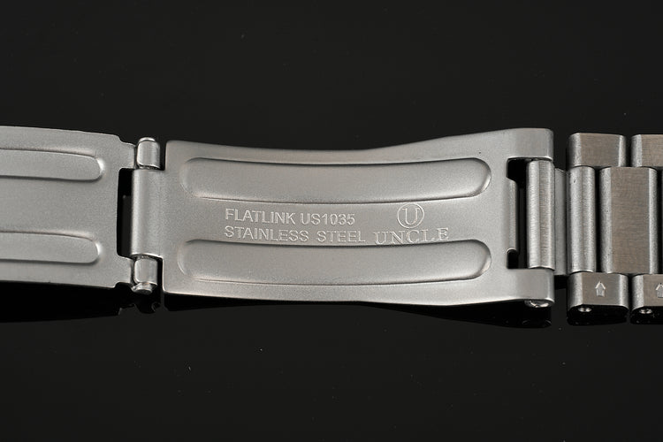 With all the Seamaster fans out there, I have been asked many times to offer the US1035 Flat Link.  Well, here it is. Same light, jangly feel as the Speedmaster version? Yep. Solid End-links? Yep. This one also has wider links at the lugs to give it an even more drastic taper. I think you're gonna love it!