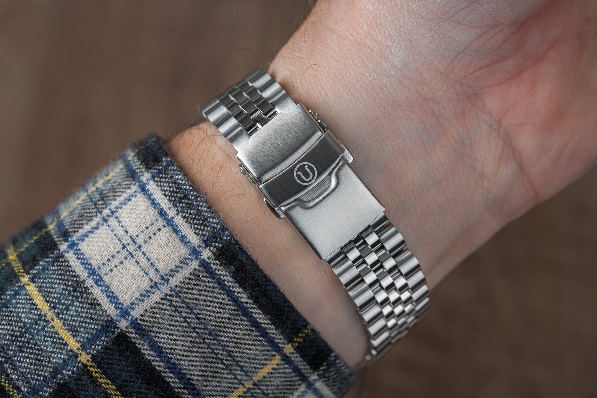 One Jubilee-style bracelet, one pair of end-links, one pair of 2.5mm spring bars.