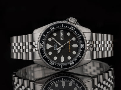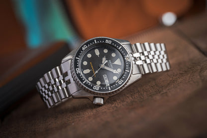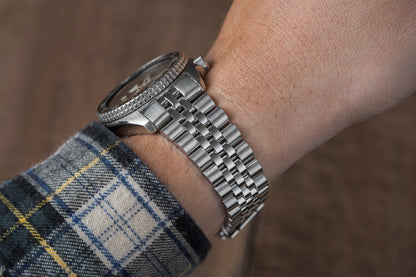 While it's no secret that I am a fan of lighter bracelets (and this one certainly is not!), I have to say this one rocks! This is a solid-link stainless steel bracelet made specifically for the SEIKO model SKX013 and its variants. It is a heavy bracelet with solid end-links that snap into the case for a perfect fit.