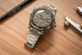 We think you will love our new Flat Link, specifically made for the NTTD model. It’s über light, conforms to the wrist, and features our double-button milled clasp, also in titanium.