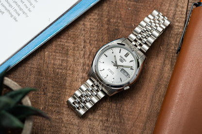 The SNK/SNKL line is a fantastic and inexpensive dress watch in the Seiko 5 line.  There are so many different dial designs and color options and it's hard to find a better watch for the price.  The bracelet, though, leaves a lot to be desired.