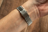 While the watch itself is exceptional, many owners find the OEM bracelet to be the weakest part of the package. The factory bracelet is serviceable, but its lightweight construction, minimal taper, and basic clasp don’t quite match the refinement of the case and dial. For a watch with this much character, the bracelet is often the first thing enthusiasts look to upgrade.