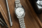The SNXS line is a fantastic and inexpensive dress watch in the Seiko 5 line. There are so many different dial designs and color options and it's hard to find a better watch for the price. The bracelet, though, leaves a lot to be desired.