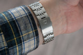 The Continental comes with solid end-links and a milled clasp. I am also including an additional clasp with 3 micro-adjustments (not pictured) so as to not repeat Seiko's mistake and create a bunch of unhappy fans who can't seem the get the right fit. This will cover all your bases and make sure you truly enjoy wearing it.