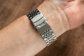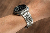 Give your modern diver that vintage look by adding the classic "Beads of Rice" bracelet. This one is available for various models, including the 6306 and 6309-704x, It tapers from 22mm to 20mm at the clasp. (Does not fit the 6309-7290. You would need the SKX version)
