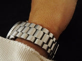 This is a super manly bracelet that is a great compliment to the greatest Seiko diver ever made! This Lincoln is a solid link bracelet with solid ends. Heavy and thick, it was made for this model and will not disappoint.