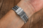 The Razor-Wire is a very unique bracelet that is a real head turner. This is the kind of bracelet that can look good on a biker, as well as a businessman. Lots of complicated parts on this one, but no hair pulling! A sturdy, stainless steel bracelet that will make you the talk of the office.