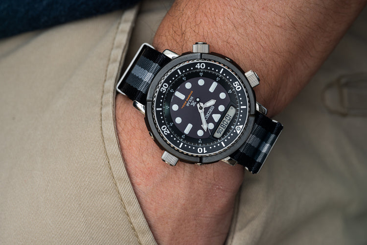 After Seiko's hybrid Analog/Digital H558-500x appeared in several Arnold Schwarzenegger's films, the watch became known to collectors as the "Arnie." A classic Seiko from the 80s that has continued to grow in popularity.