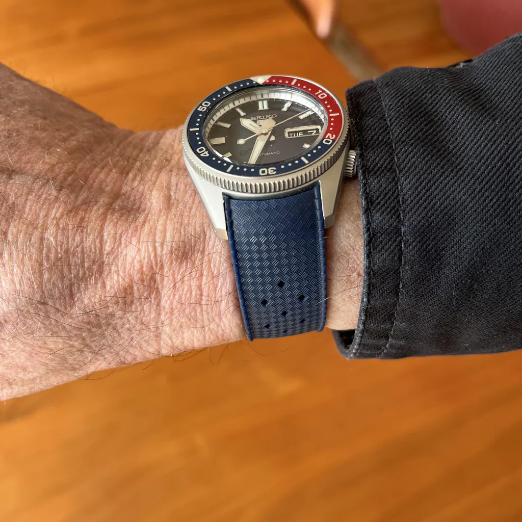 If you thought you were stuck with that gap between your SKX and the strap - think again! This custom version is our well-loved rubber composition that is durable, comfortable and looks incredible on wrist!