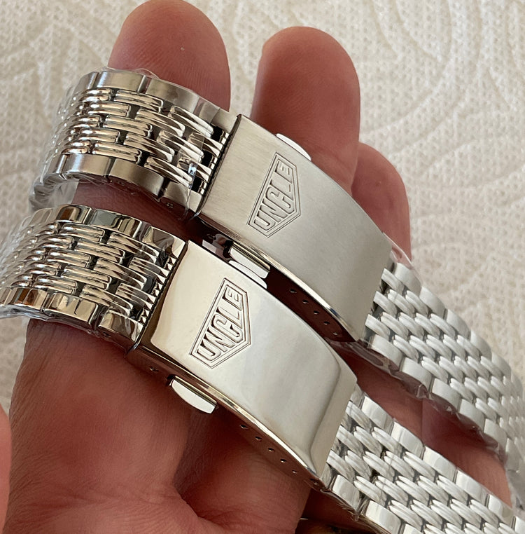 TAG Heuer reissues of the 1960s Heuer Carrera have long been a favorite amongst collectors. However, one thing has always been missing, a vintage inspired bracelet to go with it. Owners rejoice, Uncle Straps now has the perfect match! My double grain Beads of Rice pays homage to the iconic '60s original. You'll absolutely love how this bracelet completes the heritage style of your Heuer Carrera re-edition!