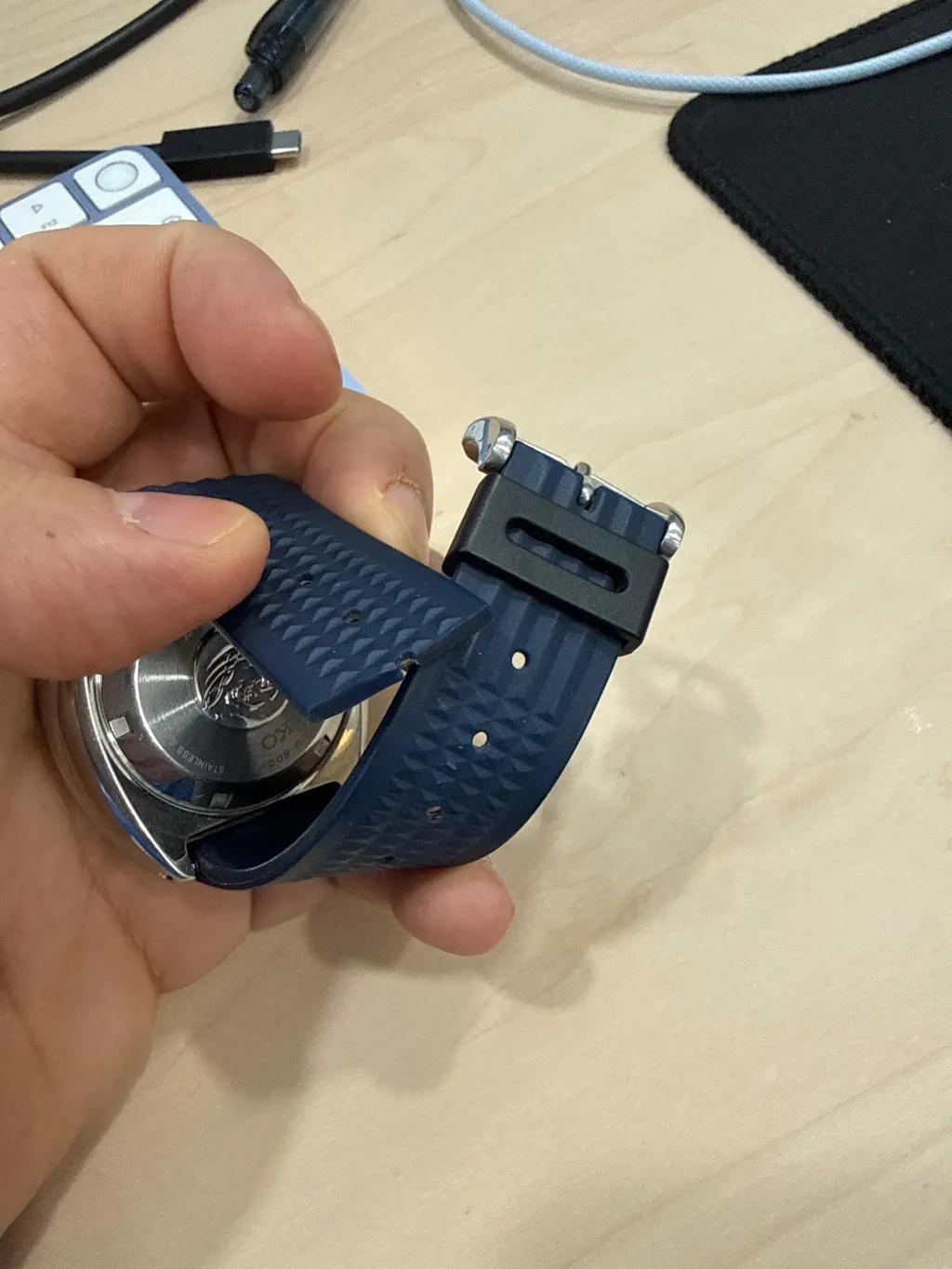 Blue Straight Rubber Waffle Strap (20/22mm)