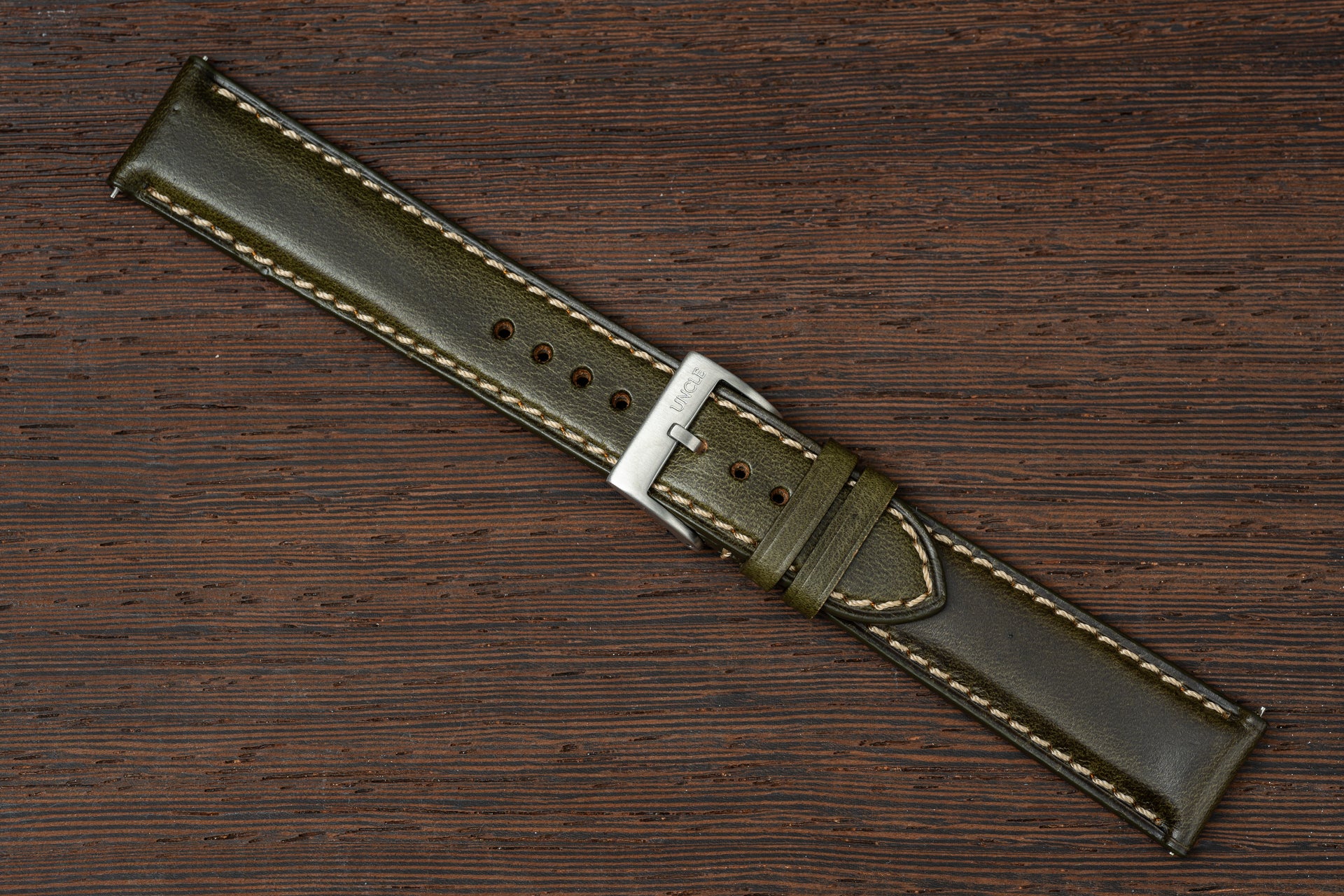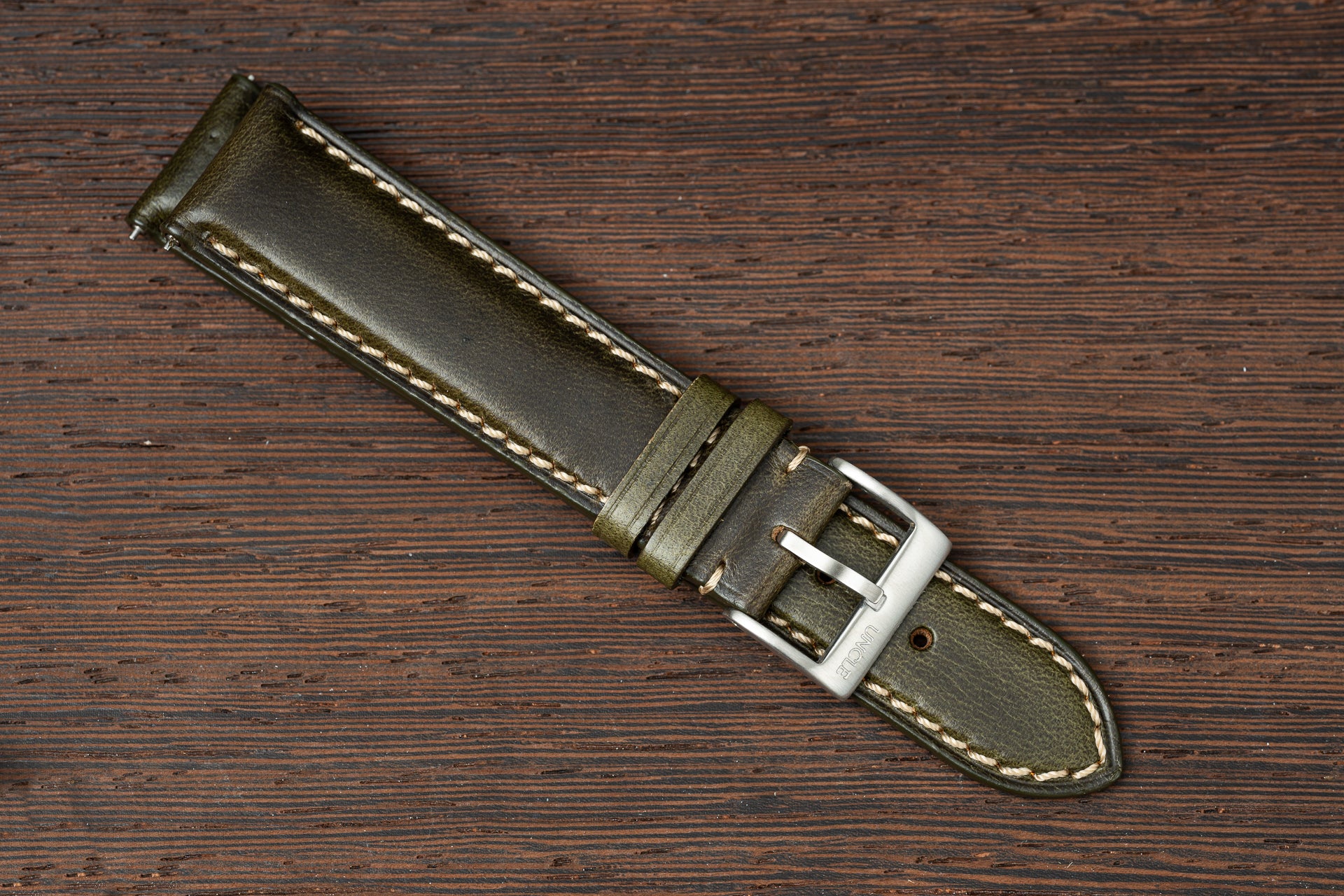 Each of my leather straps comes with quick-release spring bars for convenient strap changes, a handsome stitched border and a classy yet robust brushed buckle.