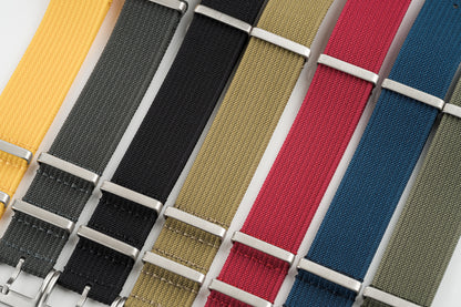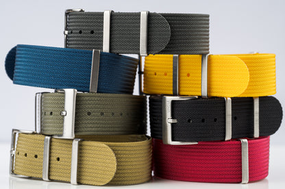 Ribbed nylon straps seem all the rage lately, so I thought my nephews might enjoy these.  Designed to work on just about every 20/22mm watch, this style of strap is very versatile and great to have on hand.  I am offering these in 6 unique colors - a little something for everybody!